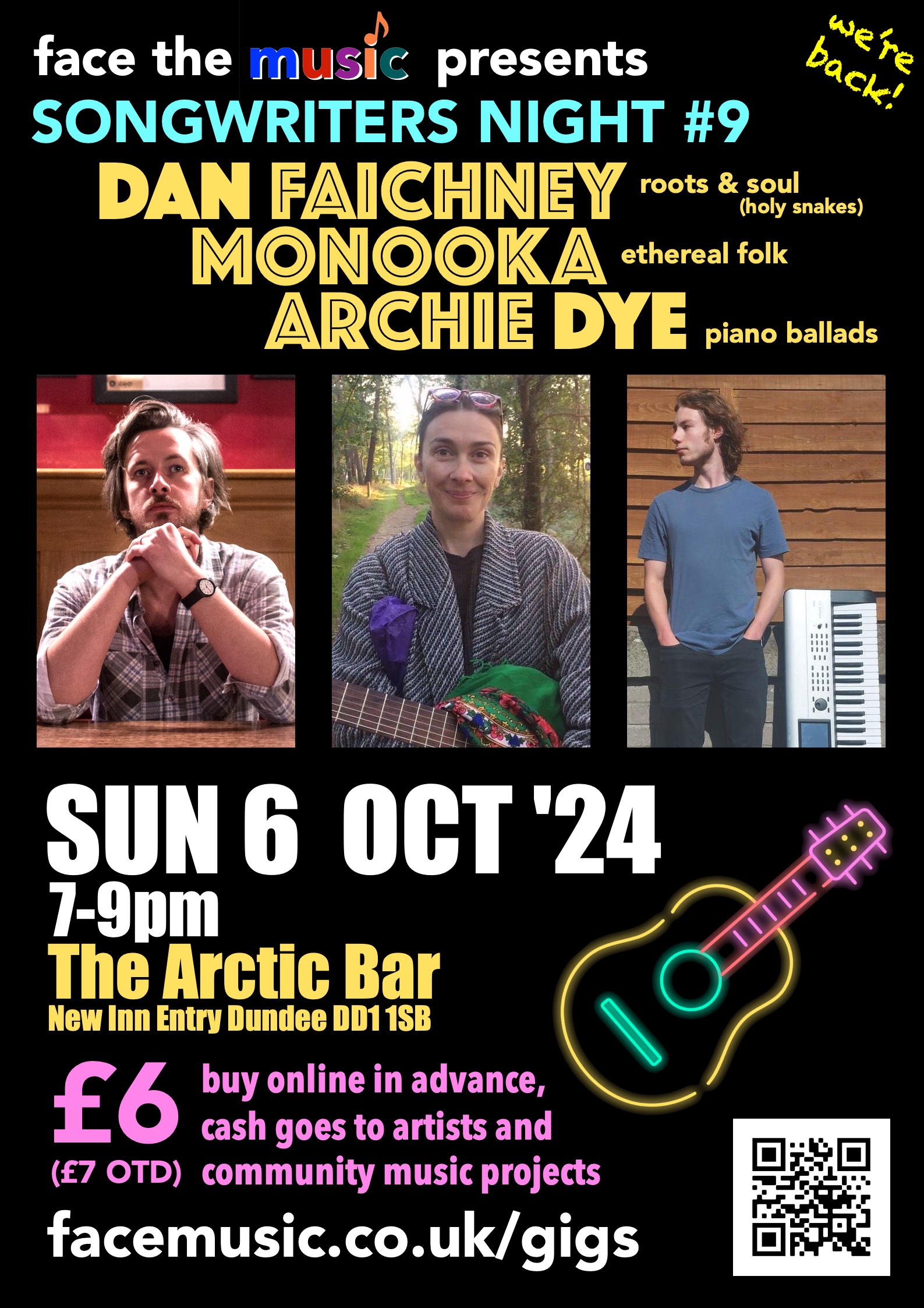 We will keep on showcasing songwriters every couple of months, and providing a place where you can hear exciting original music in an intimate setting. If you would like to get involved, please drop us a line: gigs@facemusic.co.uk.